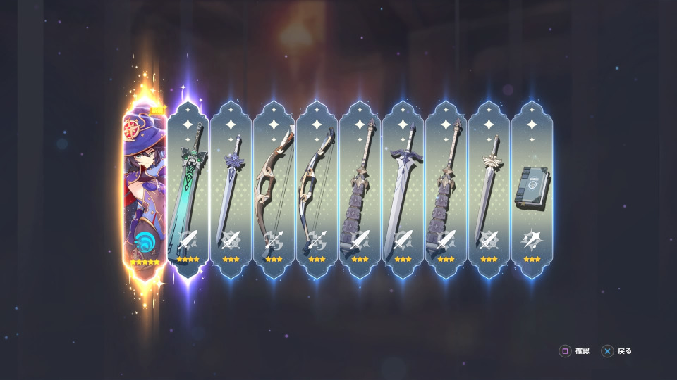 この後は単発で引いて、武器からのピックアップ確定キャラまで引いて、