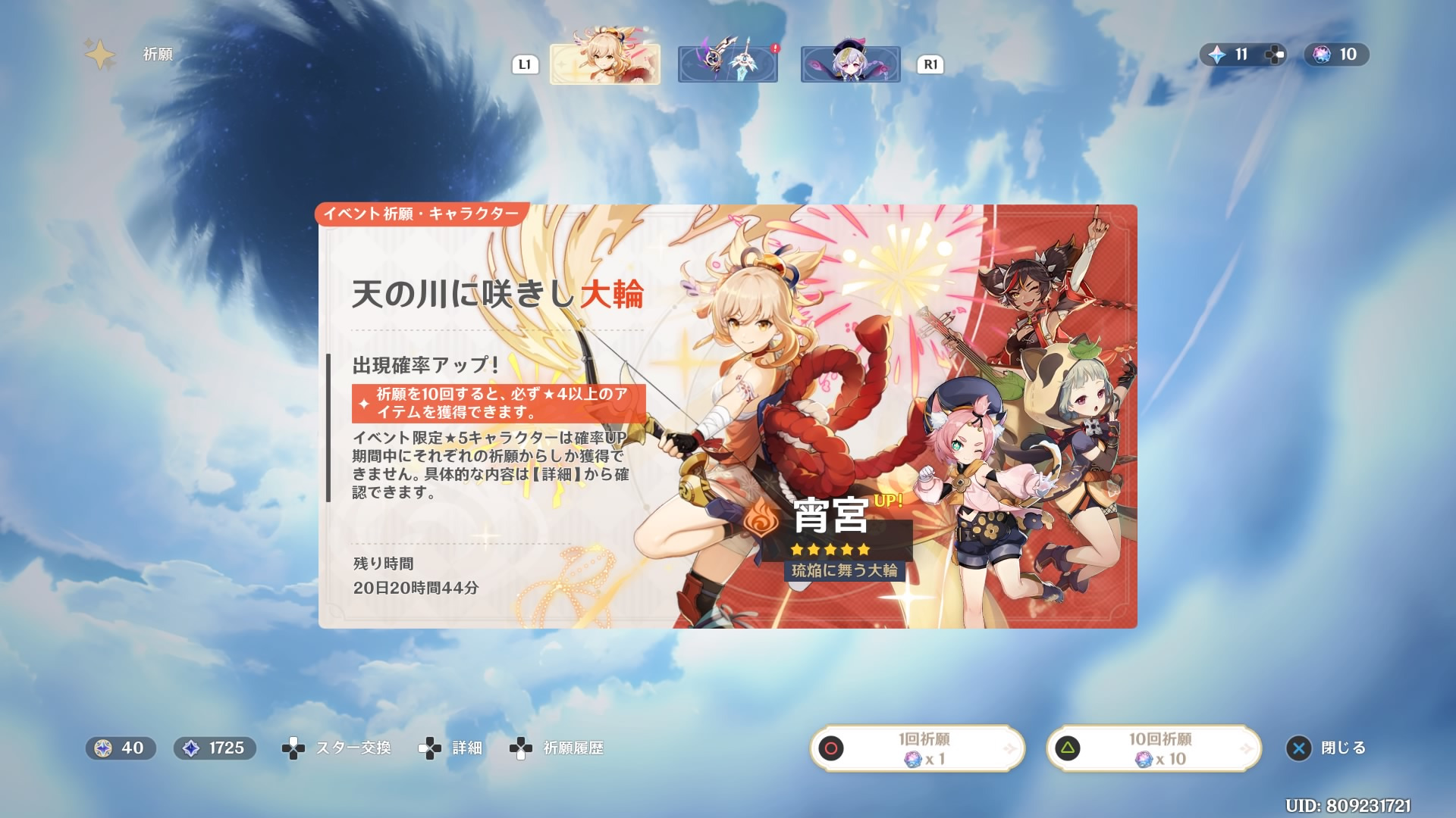 宵宮ガチャ来た!スターライト交換して取りあえず10連やるぜ!