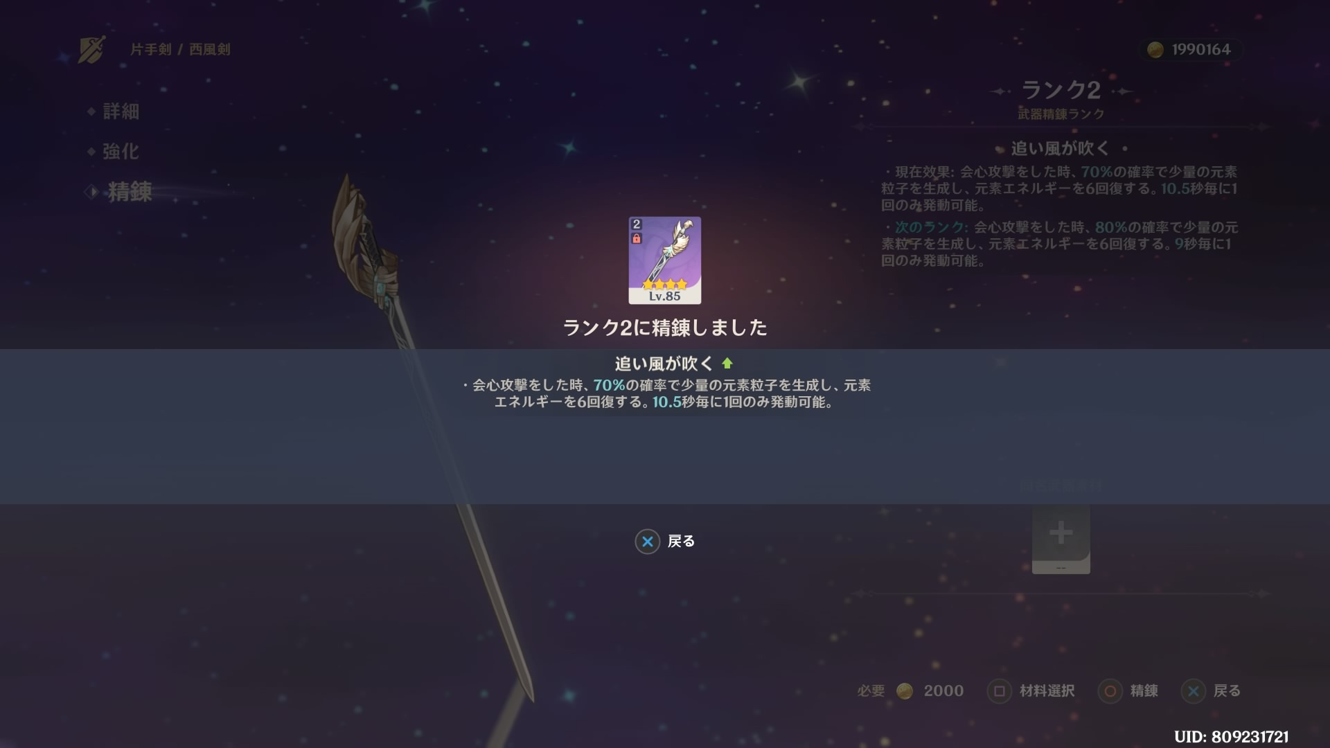 因みに、あと2回で星4確定だったので、1回ガチャしたら西風剣でした。