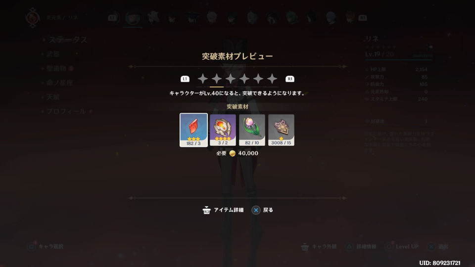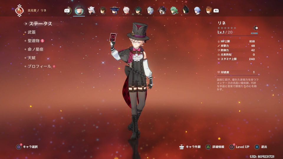 天賦はレベル6まで上げました。天賦本も集めてないので……。