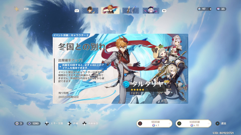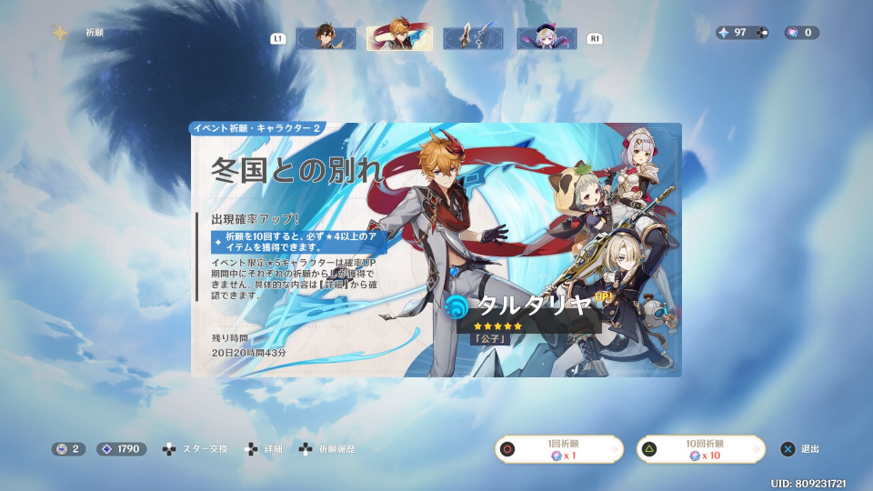 フレミネ欲しい!!万が一出てもいいタルタリヤの方でガチャする。2凸いる?
