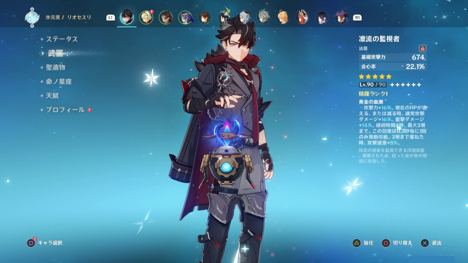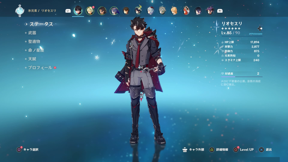 ということで、リオセスリLv80も突破出来たし、天賦も全部6まで上げた。