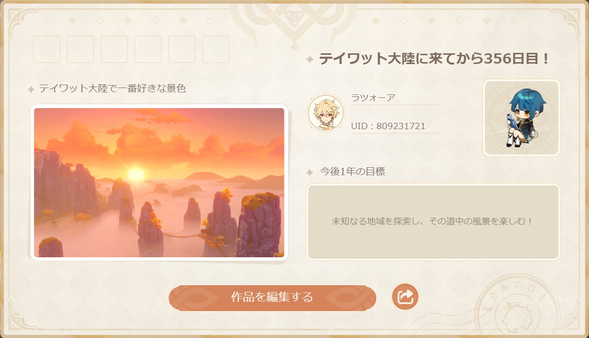 ゲーム始めてからはまだ一周年経ってないから……。