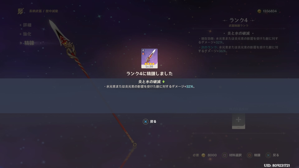 田中槍がランク4になった。使わない武器ばっか出やがるぜ。