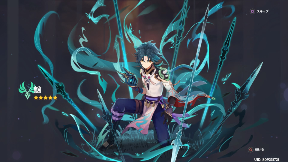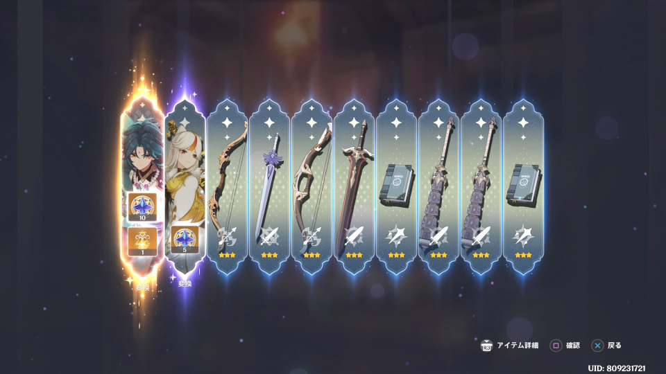 10連。ピックアップ星5キャラ確定で魈様来ました。