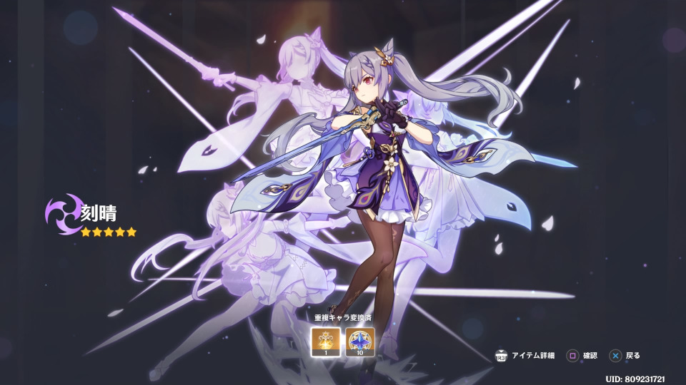 刻晴(1凸)でした。あ、うん。海灯祭で頑張ってたからかな……。