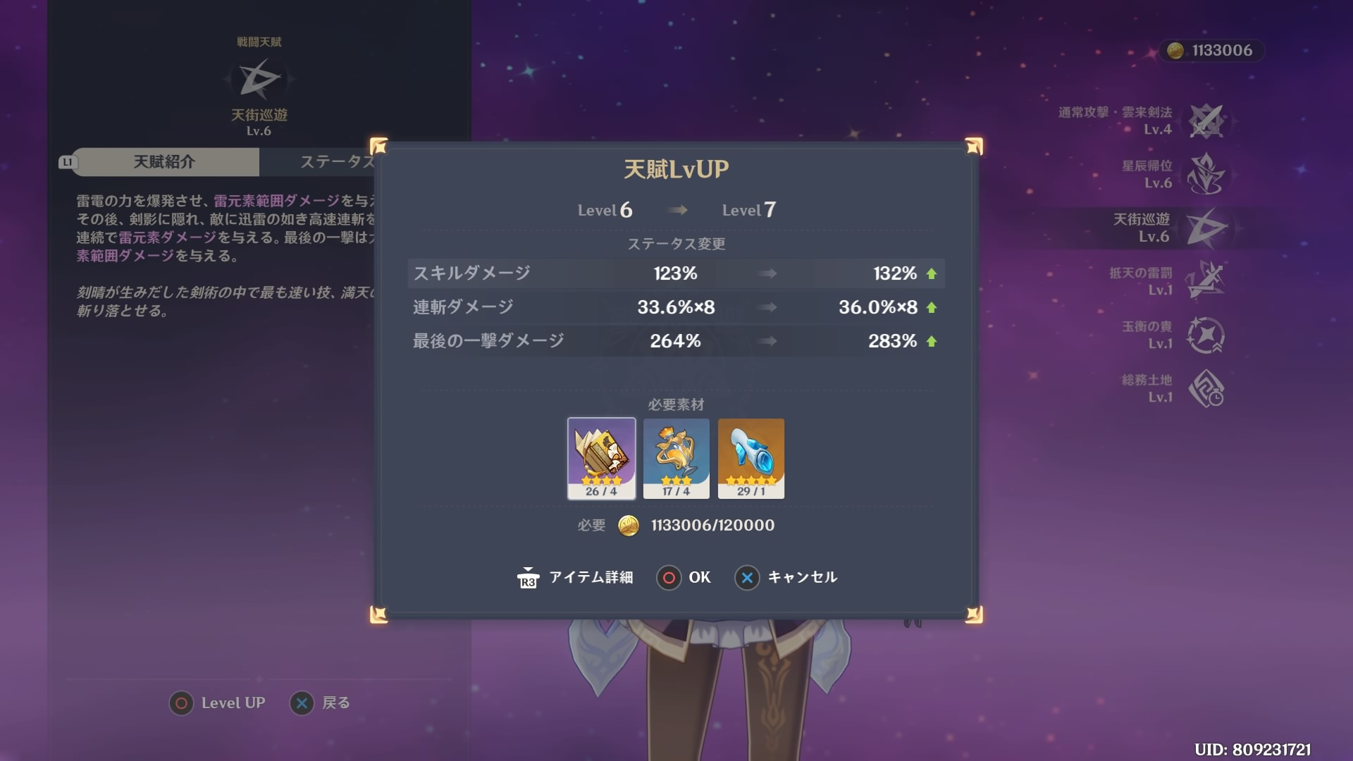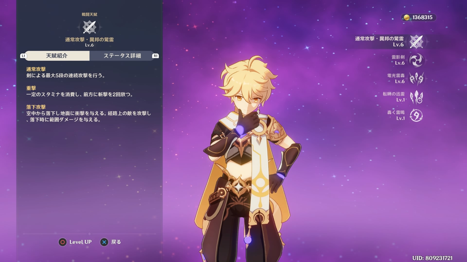 雷主人公の天賦レベル6まで上げたぞ!でも使ってないぞ!