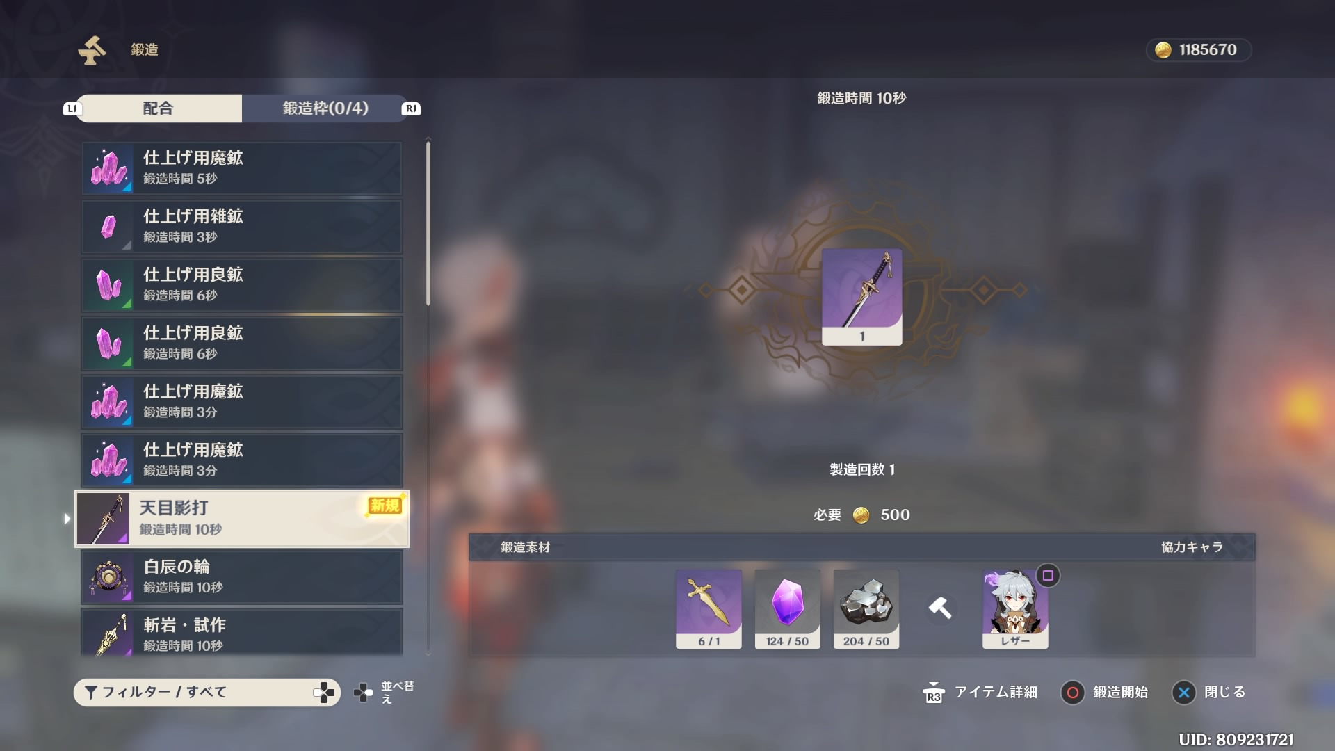 万葉がいいけど、取りあえず刻晴に持たせました。