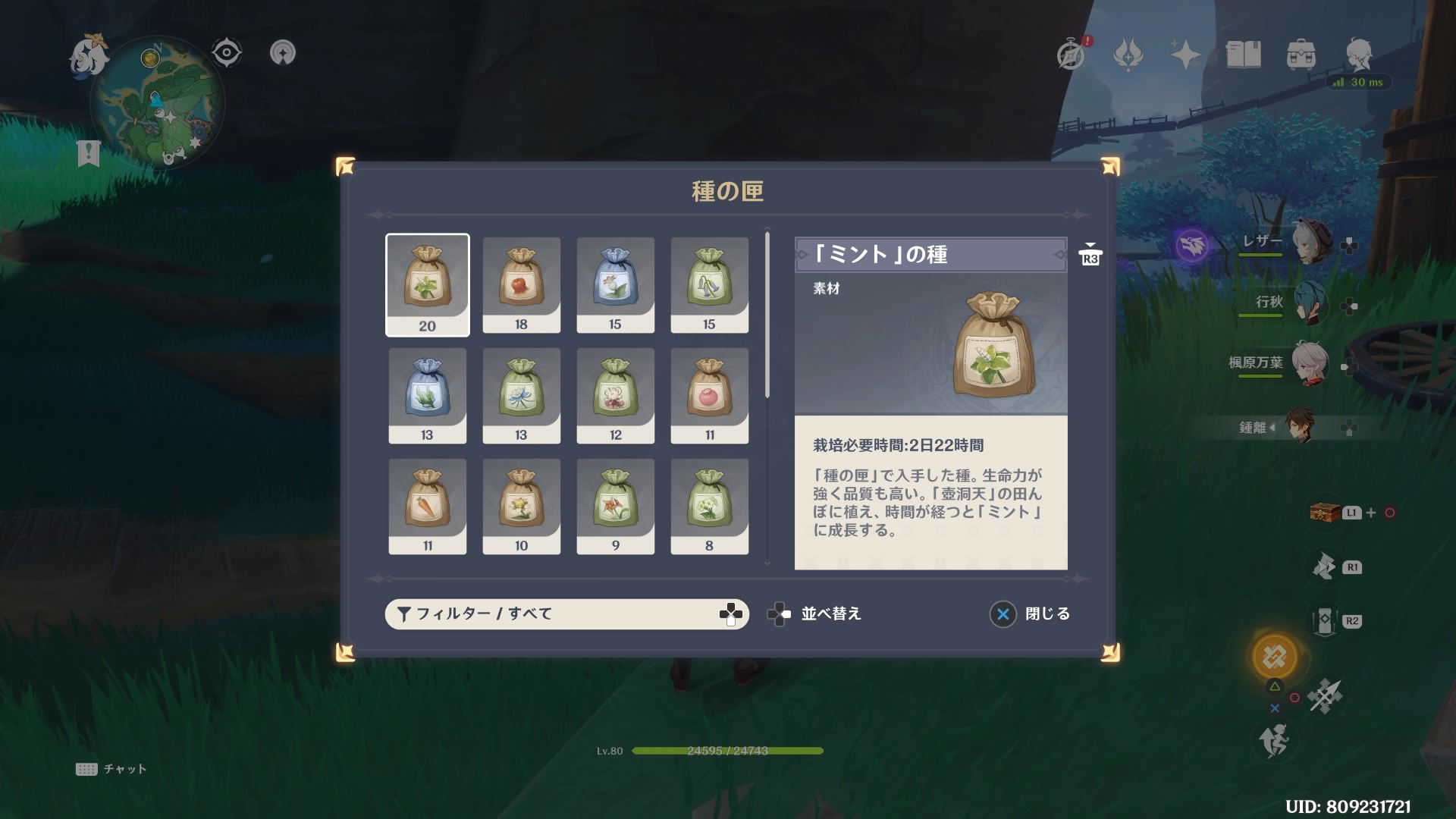 暫くして、装備して野生の種に出来る植物を採取すると、