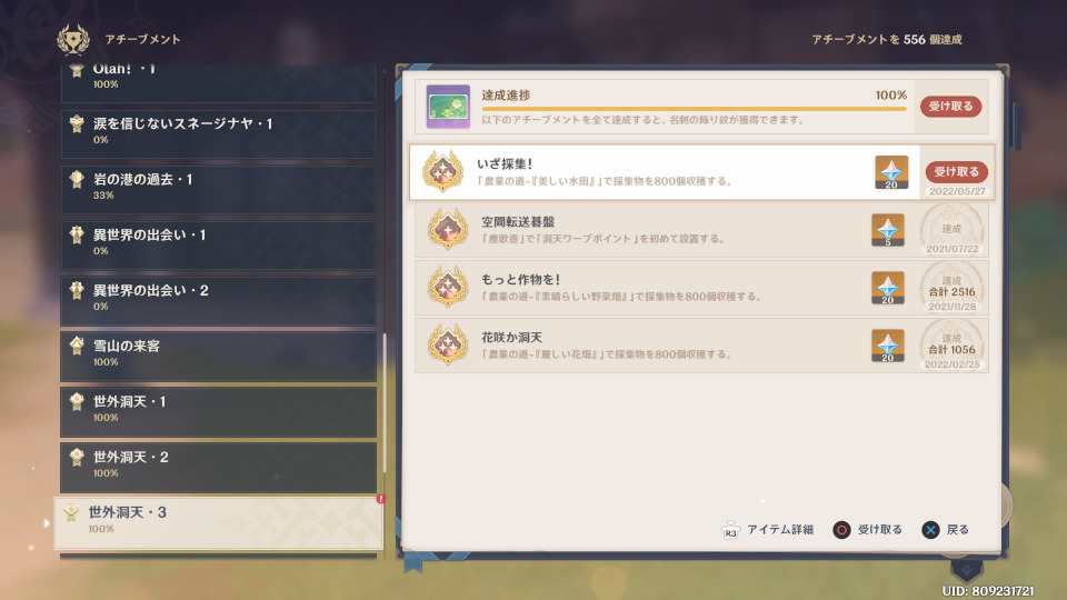 ついに農業アチーブメント完了したわぁ。