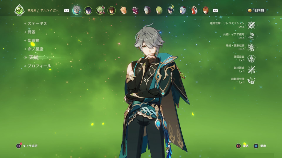 天賦も全部6にしました。モラがめっちゃ減った……。