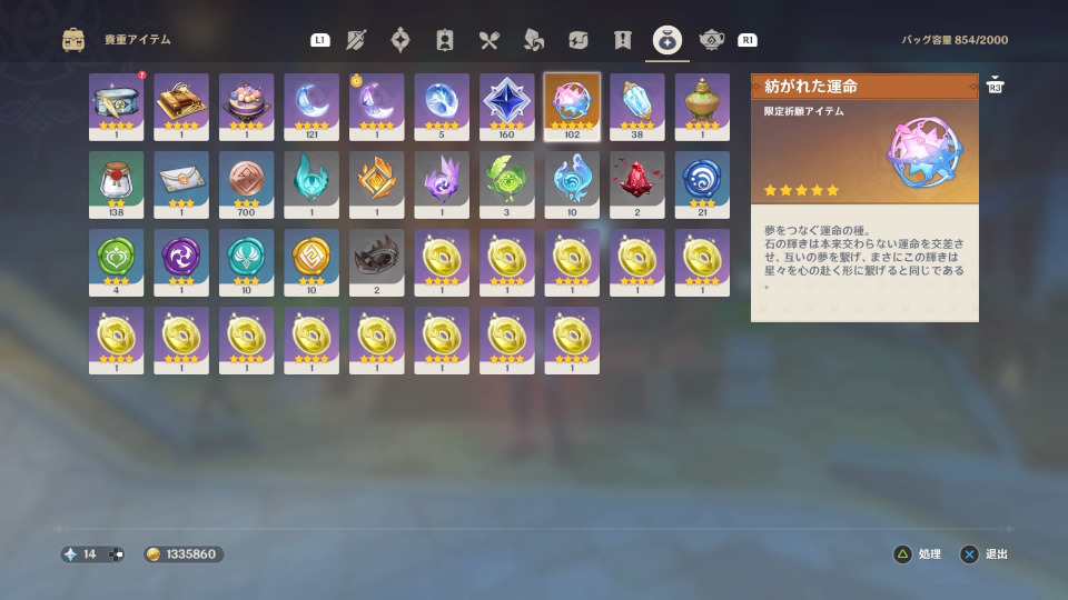 紡がれた運命は50個!前回のフリーナ白朮ガチャを69連まで引いてる。