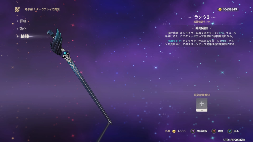 剣の方は1個持ってたので、こちらもランク3に。育ててはない。