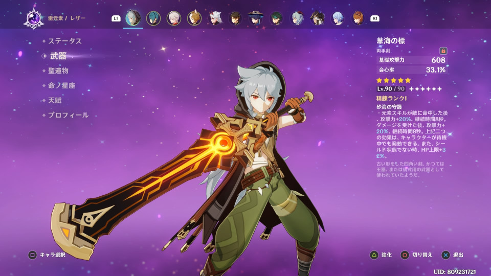レザー用に会心大剣欲しいと思ってたので、大剣を軌定に。