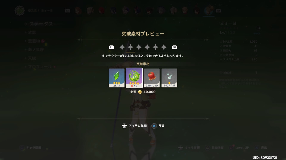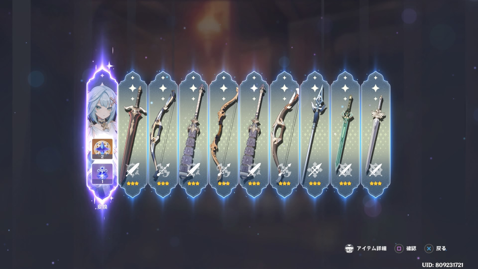 この後は単発で引いて、武器からのピックアップ確定キャラまで引いて、