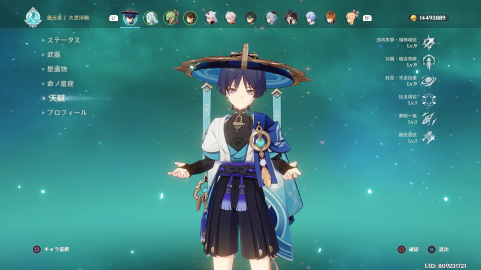 放浪者は天賦全部9に出来ました。聖遺物も砂上にした。